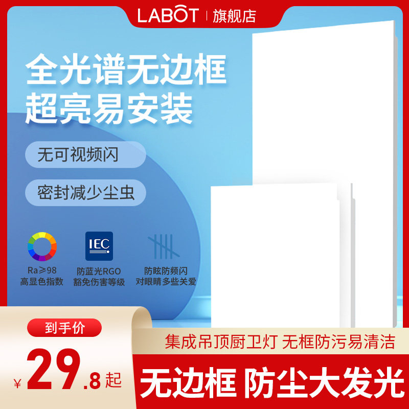 全光谱无边框卫生间厨房集成吊顶专用平板灯防水浴室照明30x30x60