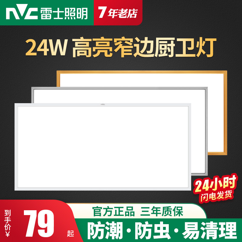 雷士照明led厨房灯300x600吸顶灯卫生间灯平板灯铝扣板集成吊顶灯