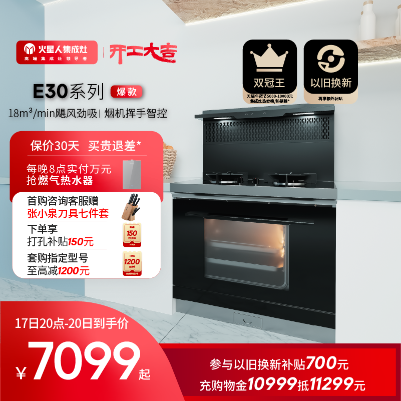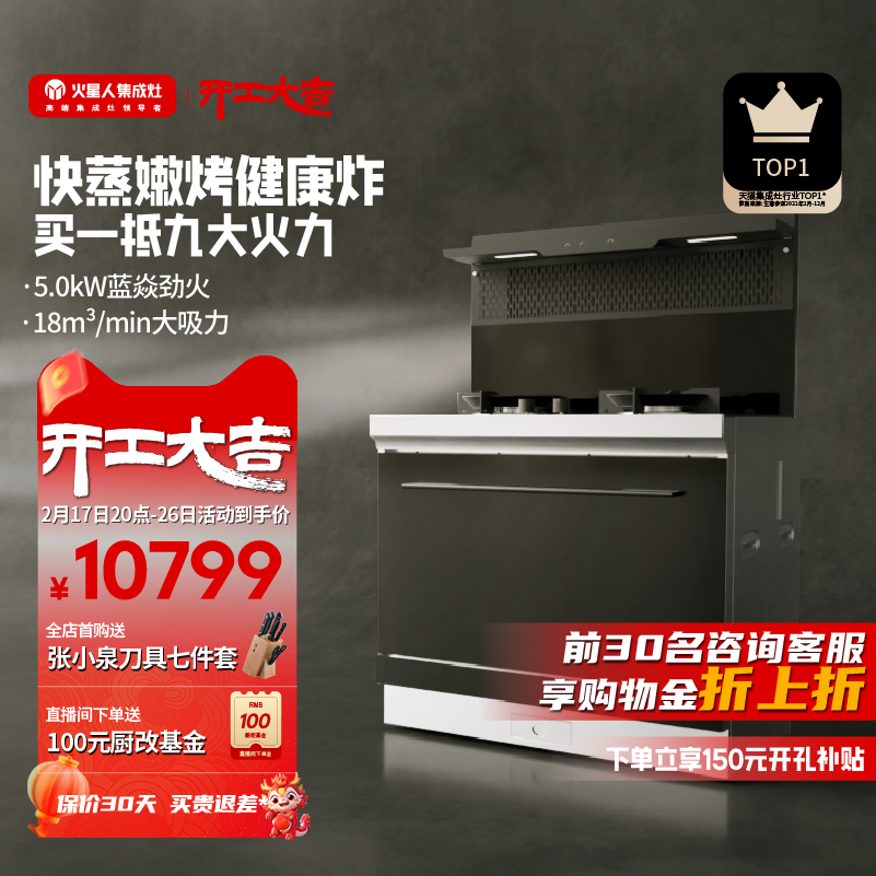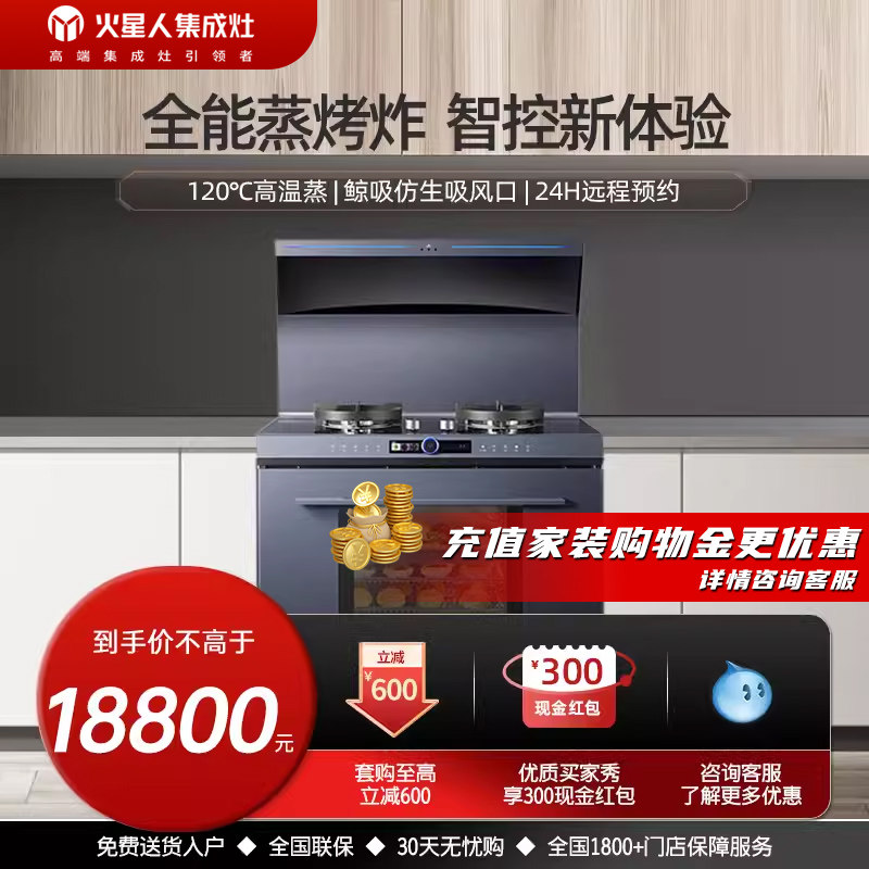 【热销】火星人E30蒸烤一体静音集成灶厨房家用烤箱消毒柜油烟机