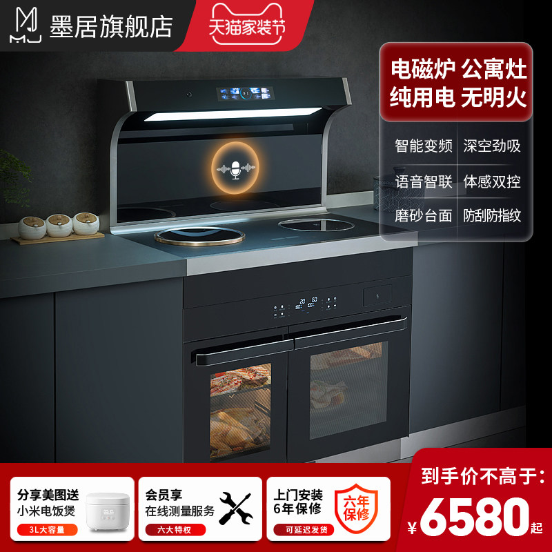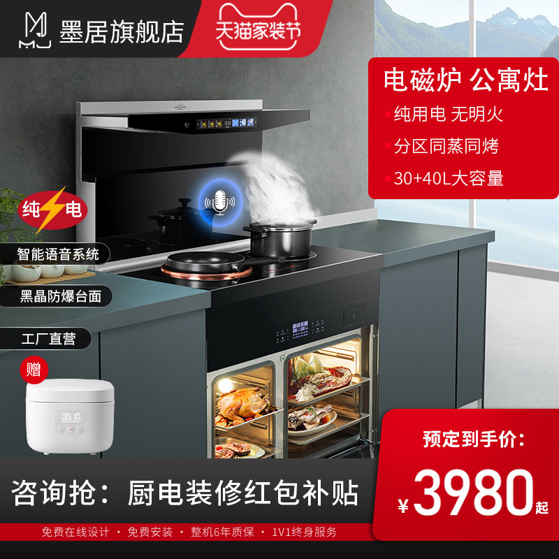 墨居双电磁炉电陶炉纯电集成灶家用独立蒸烤炸一体自动清洗公寓灶