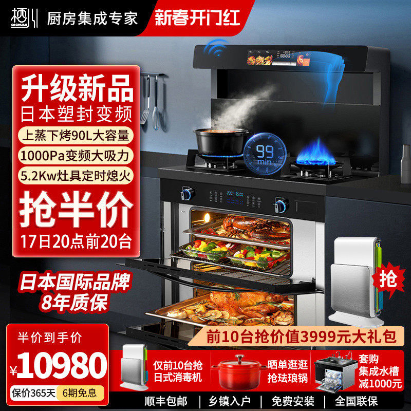 【新品上市】顾家集成灶蒸烤一体灶家用独立蒸烤箱油烟机灶台消毒