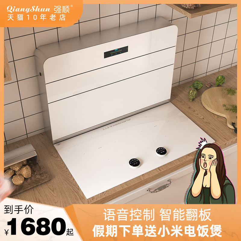 强顺分体式集成灶白色电磁炉侧吸下排烟机灶具套装小清新一体灶