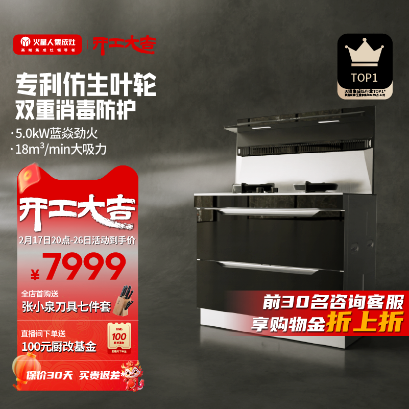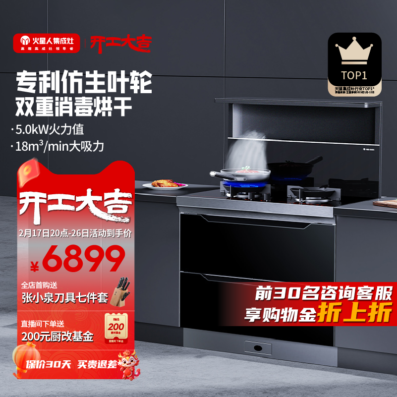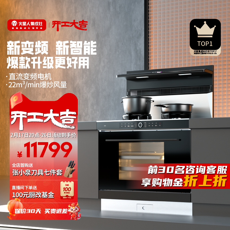 火星人辣不怕集成灶一体灶家用蒸烤箱厨房油烟机消毒橱柜燃气灶台