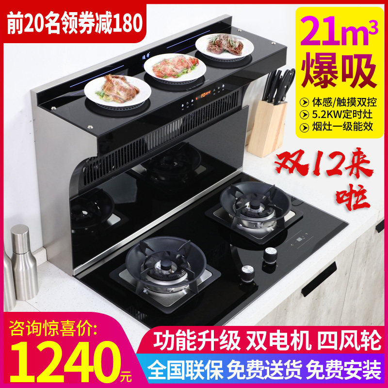 逸帝分体式下吸式抽油烟机燃气灶套餐下排侧吸嵌入烟灶集成灶变频