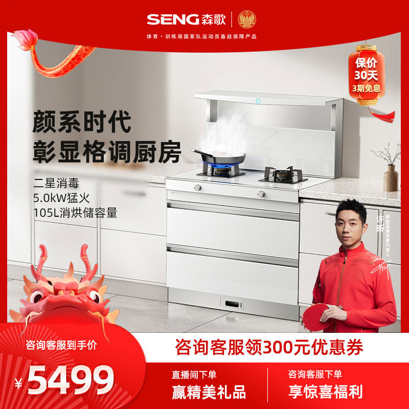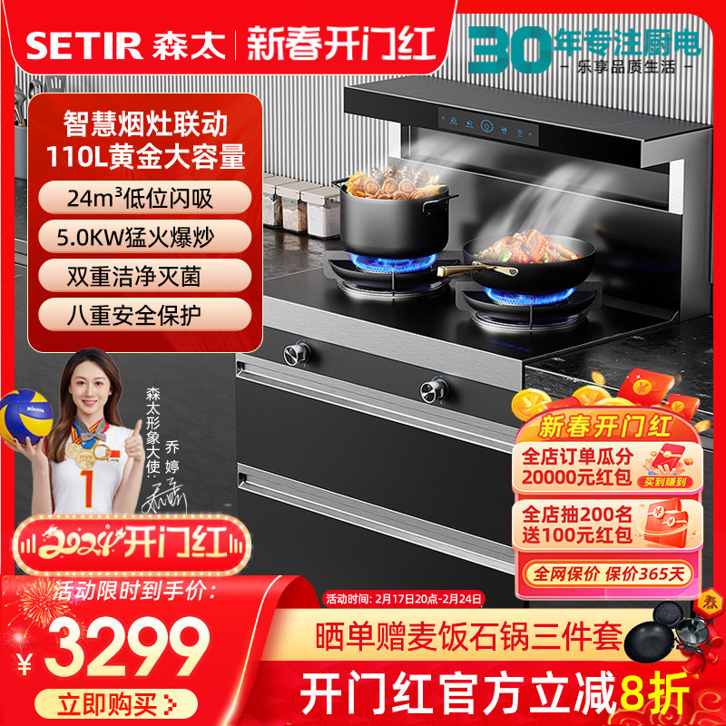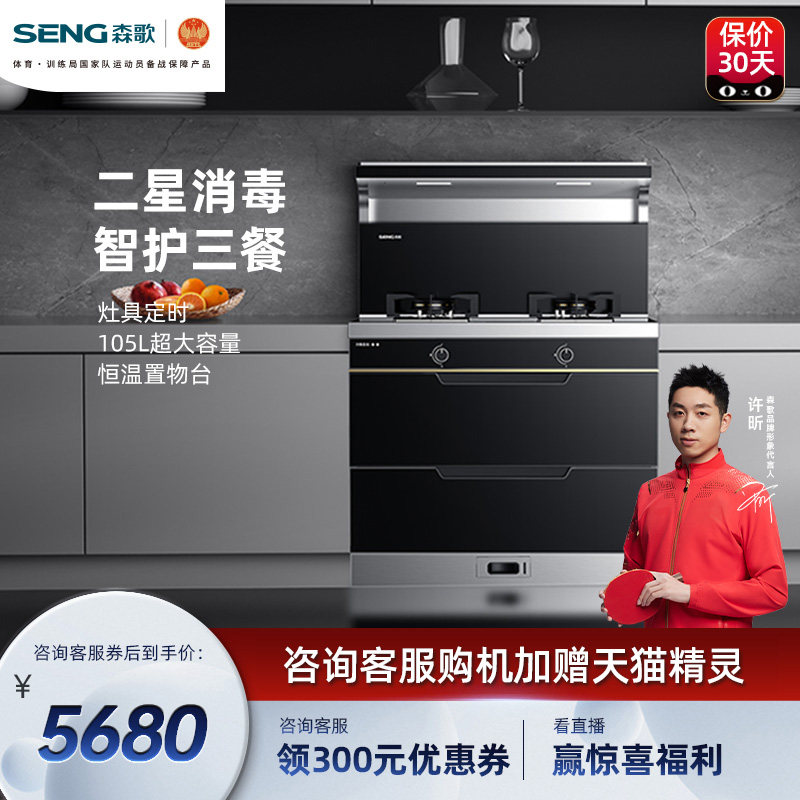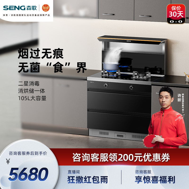 森太智能联动T16M集成灶一体油烟机燃气灶消毒柜