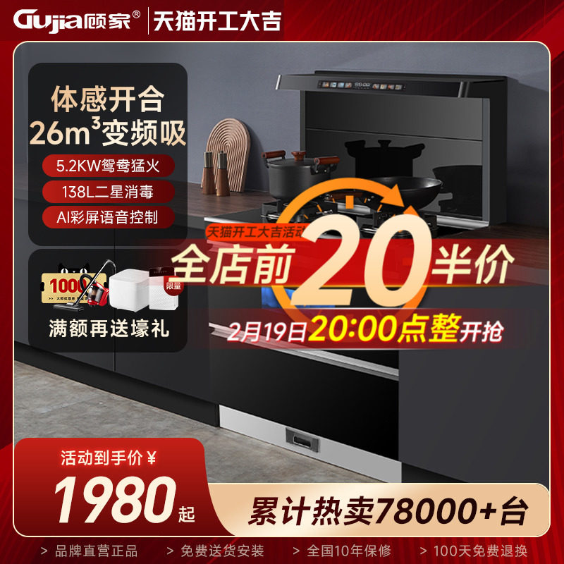 【升级80L容量】顾家变频集成灶蒸烤炸炖箱一体灶 家用官方旗舰店