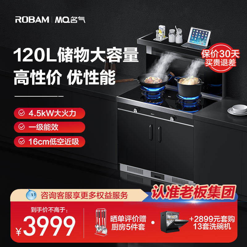 老板名气F10A集成灶储物柜一体灶碗架款家用下排烟大容量官方旗舰