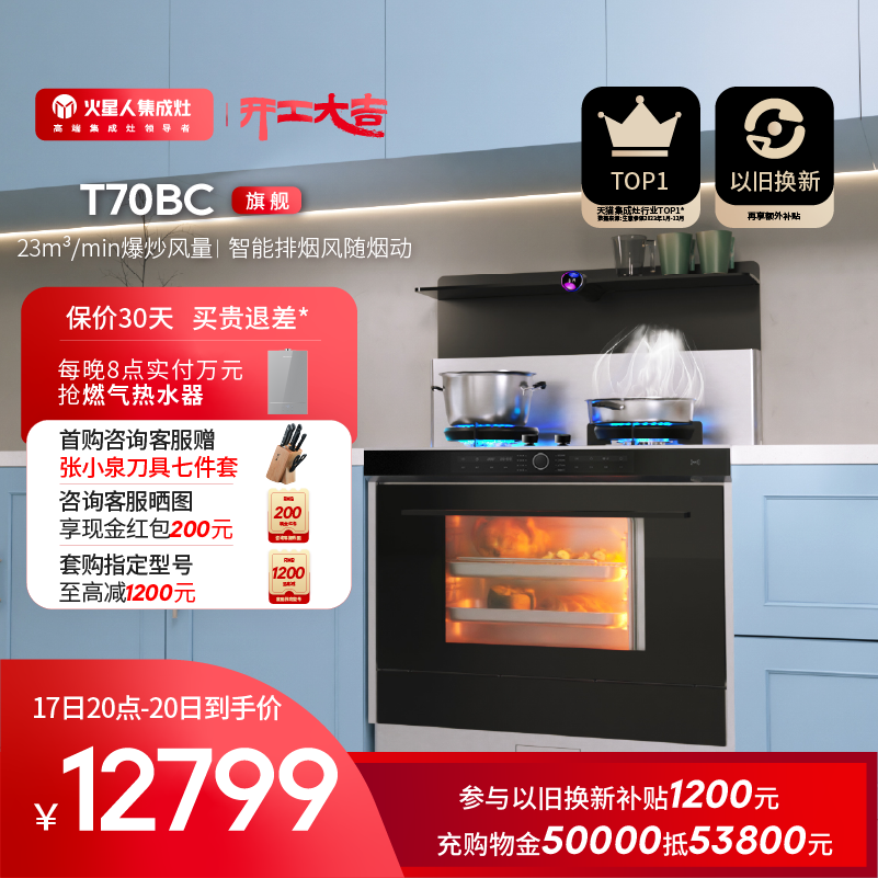 【新品】火星人集成灶T70BC集成灶蒸烤一体智能蒸烤炸家用蒸烤箱