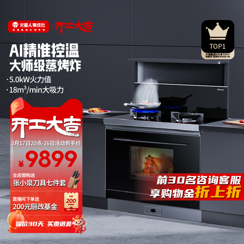 【爆款】火星人ET50bc蒸烤炸家用消毒柜烤箱集成灶油烟机官方旗舰