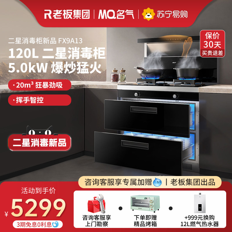 老板名气FX9A13消毒柜集成灶一体灶家用5.0kW大火力官方旗舰新品