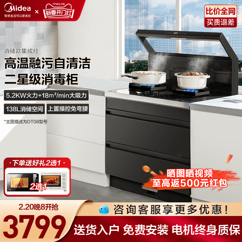 美的出品华凌集成灶烟机燃气灶消毒柜一体集成灶家用官方WD26