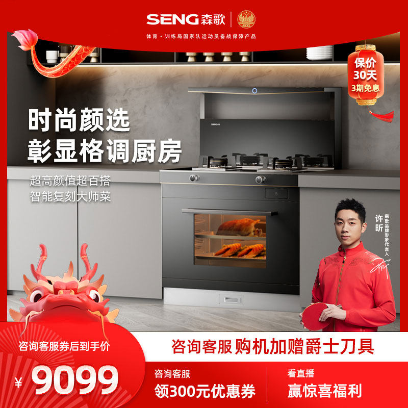 SENG森歌 I3ZK智能语音集成灶家用大火力蒸烤一体燃气灶