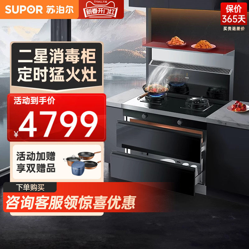 苏泊尔UX10集成灶家用消毒柜抽油烟机橱柜侧吸燃气灶灶台一体机