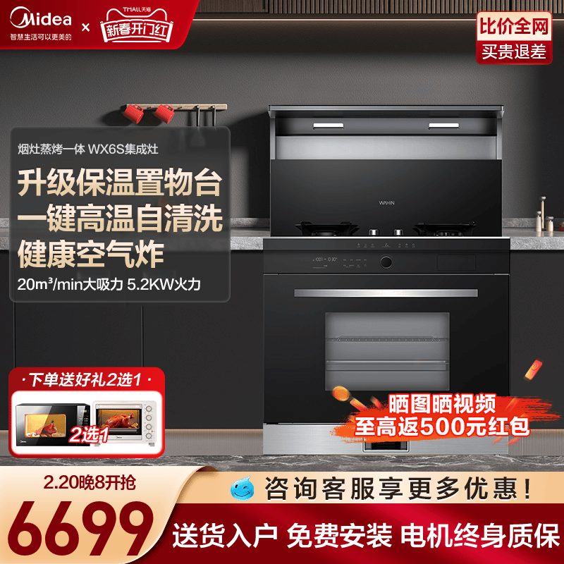 美的华凌集成灶一体灶家用蒸烤一体油烟机灶具烤箱一体旗舰店WX6S
