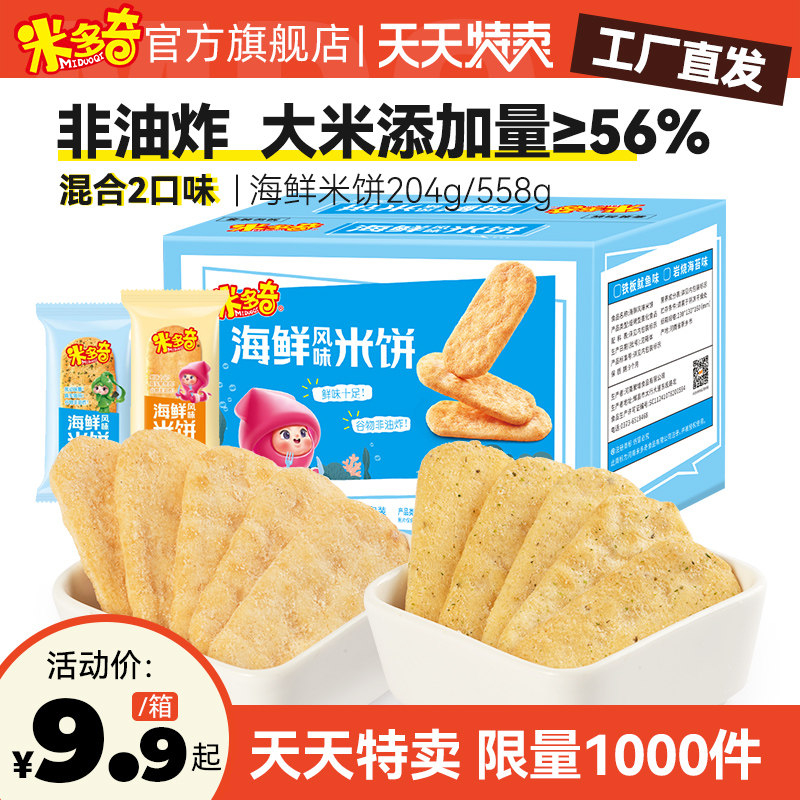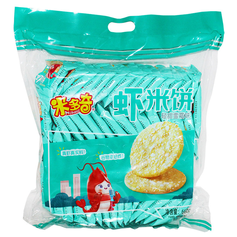 米多奇虾米饼雪饼轻甜雪霜味660g海鲜风味米饼零食品小吃大礼包装