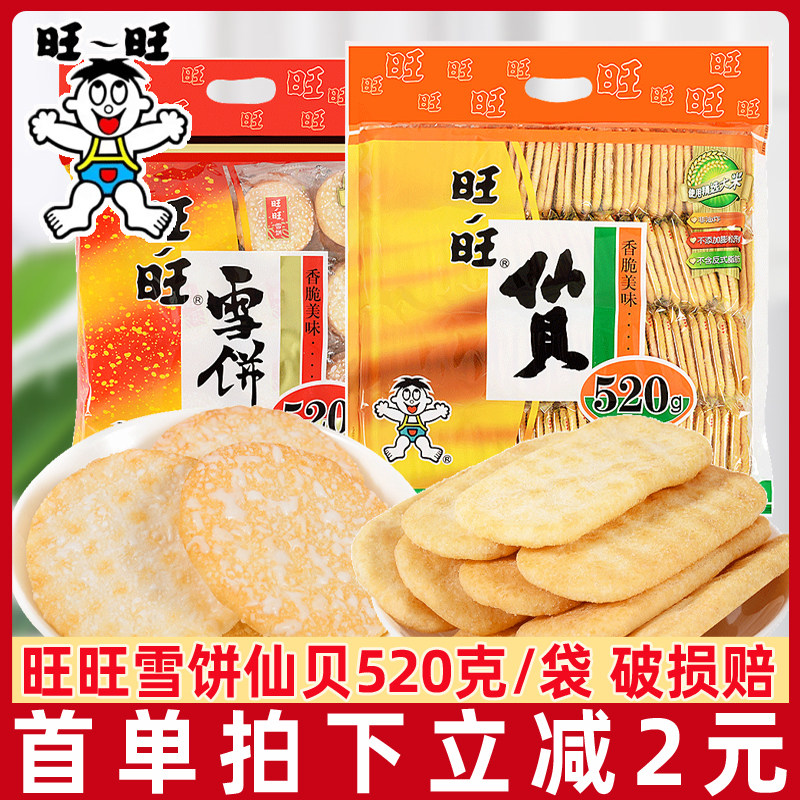 旺旺雪饼仙贝大米饼整箱大袋520g膨化食品米果休闲小吃儿童大礼包
