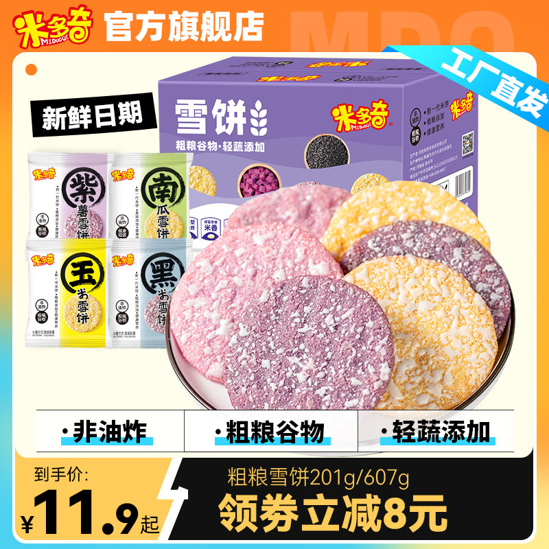 【推荐】米多奇粗粮雪饼米饼早餐饼干膨化零食大礼包食品小吃整箱