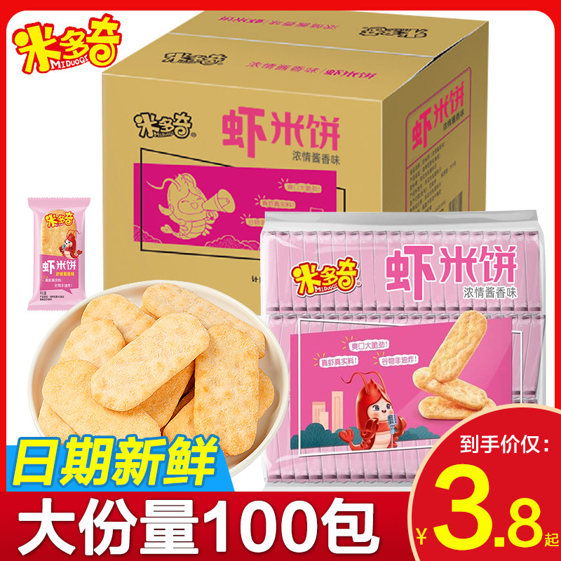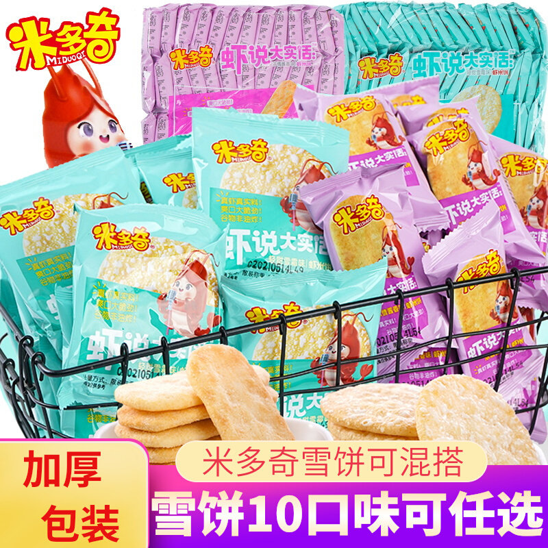 米多奇米饼雪饼办公室休闲食品小吃饼干膨化零食礼包100包整箱