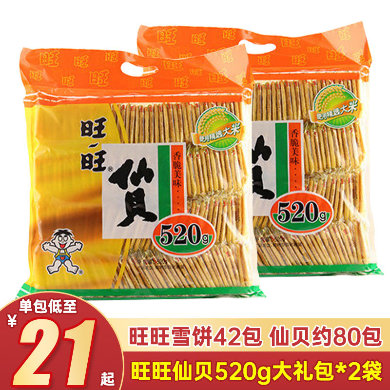 旺旺雪饼大礼包520g大米饼办公室宿舍儿童解馋旺仔仙贝休闲小零食