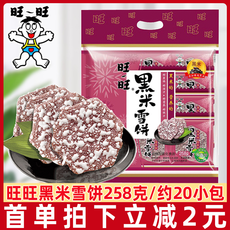 旺旺黑米雪饼258g/袋米饼仙贝膨化休闲食品米果饼干儿童零食怀旧