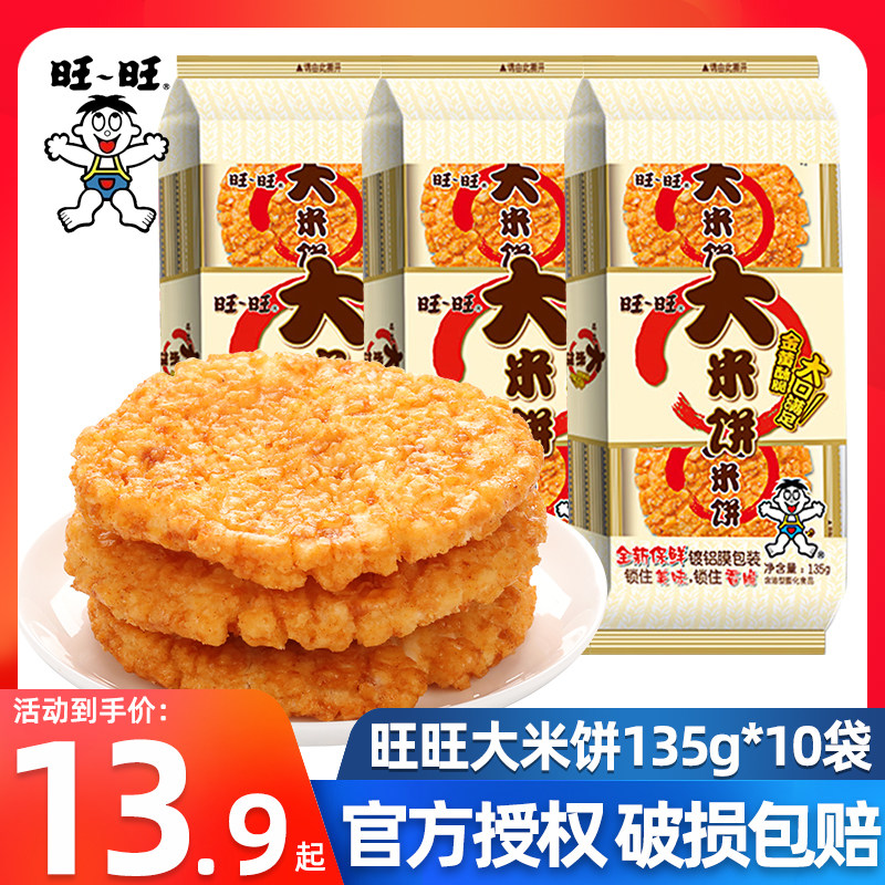 旺旺大米饼1000g雪饼仙贝怀旧膨化135g儿童小包装休闲零食批发