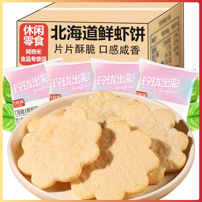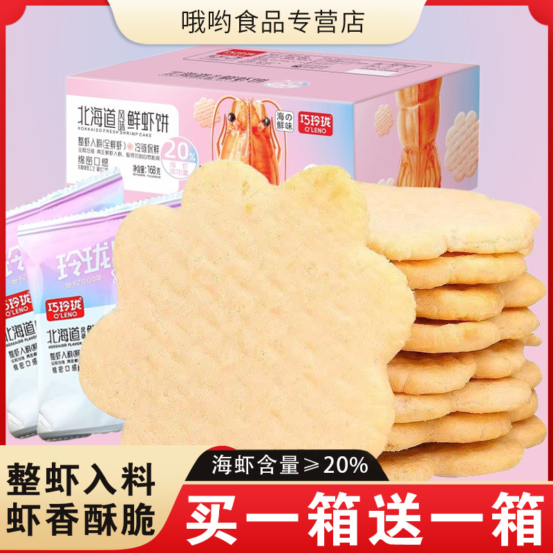 网红爆款【活动款】巧玲珑北海道鲜虾饼168g网红直播零食雪饼儿童