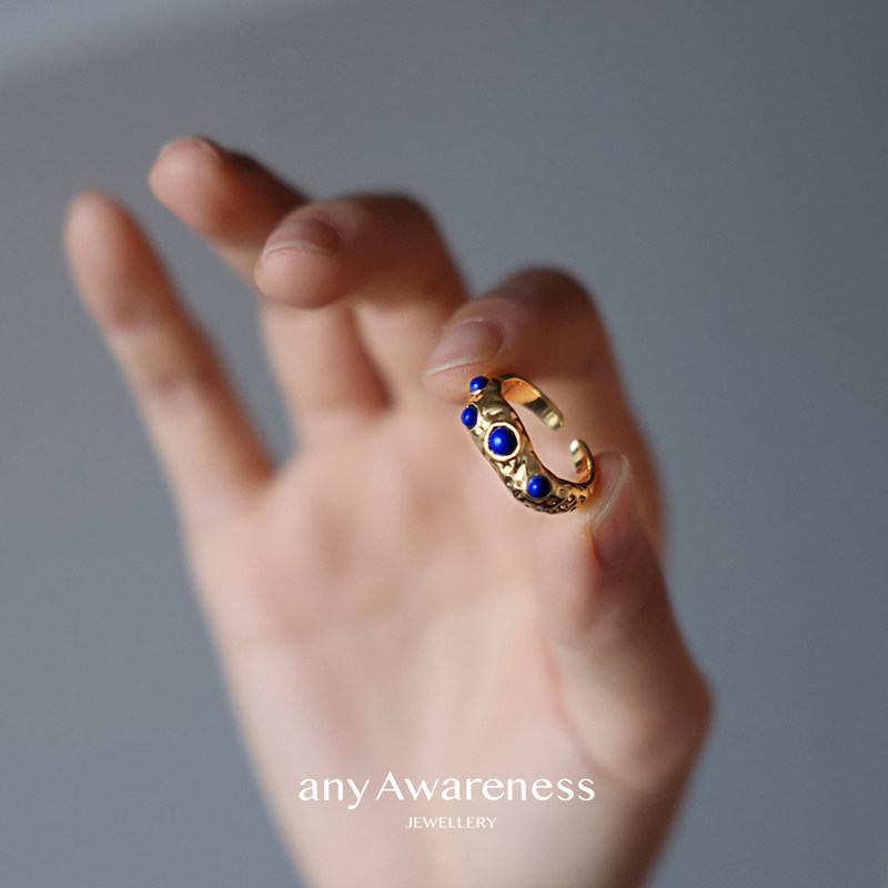 手工捶打纹青金石圈戒小众手工感原创厚镀18k金高级感法式开口戒