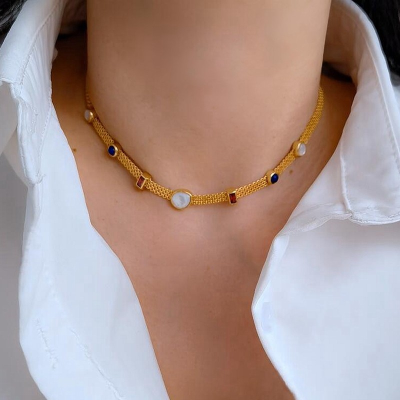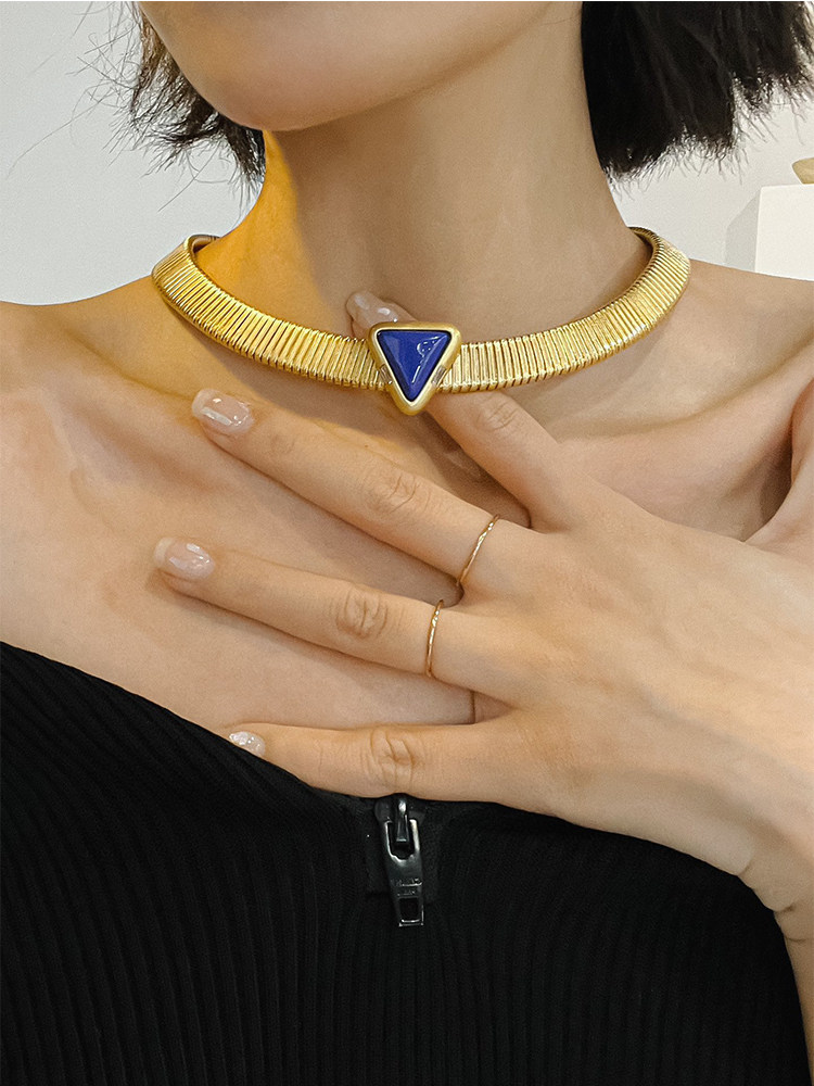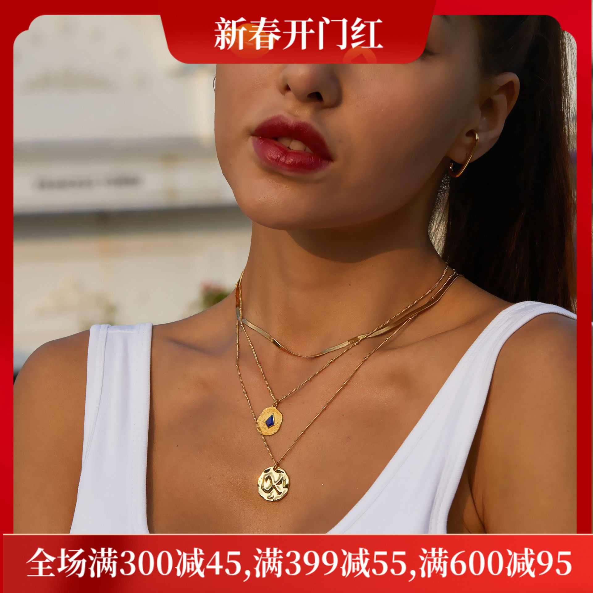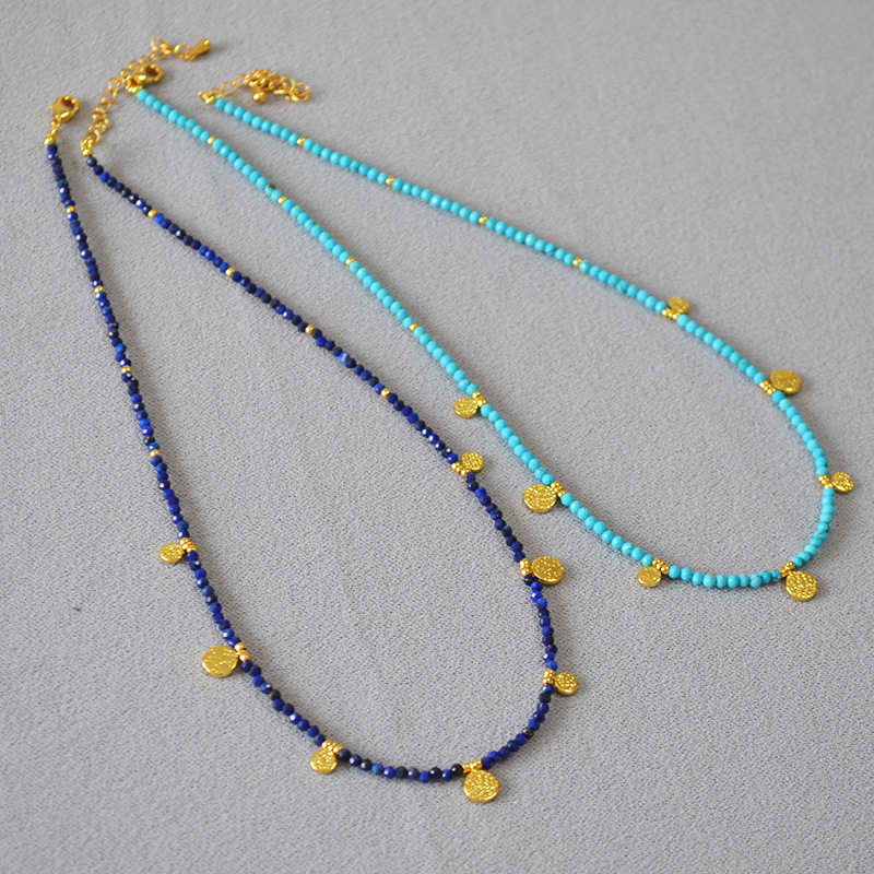 欧美小众复古青金石绿松石串珠金色钱币挂坠简约气质细项链锁骨链