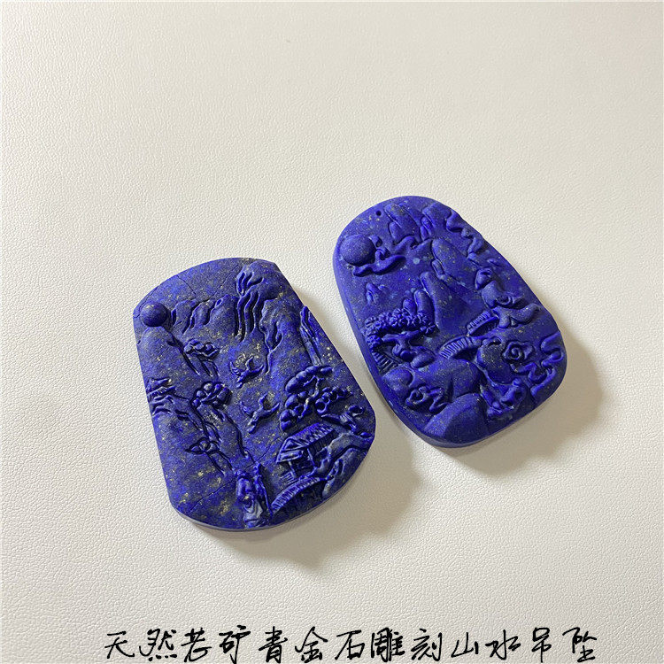 天然老矿青金石帝王青金石雕刻山水款吊坠 女款水晶吊坠饰品A0131