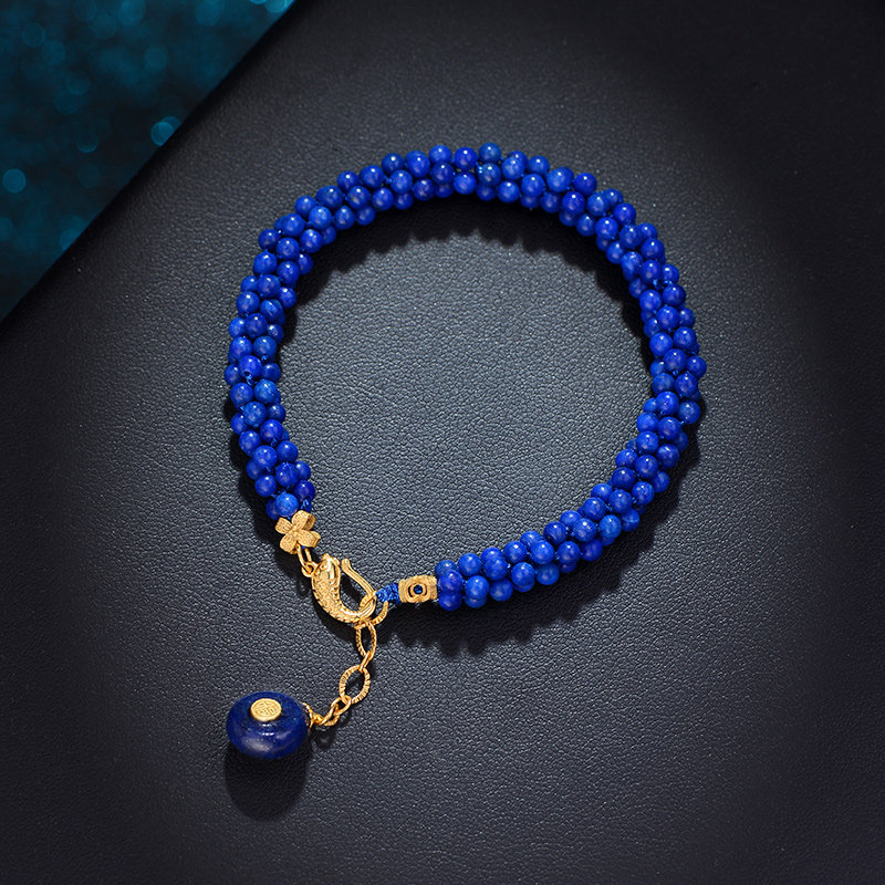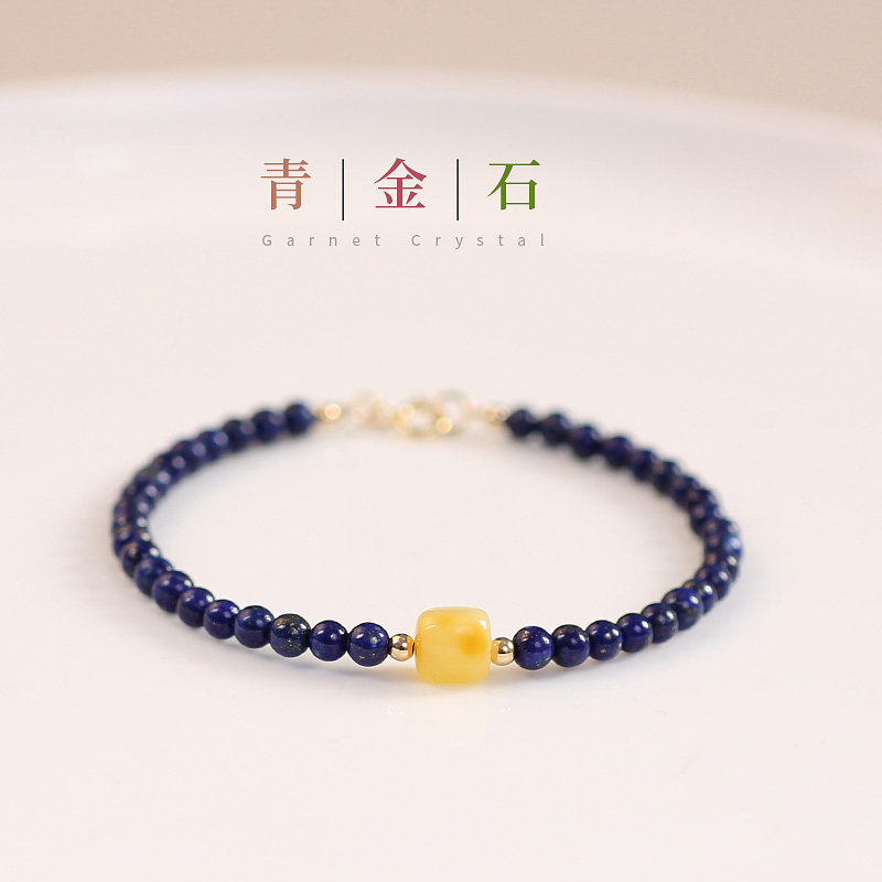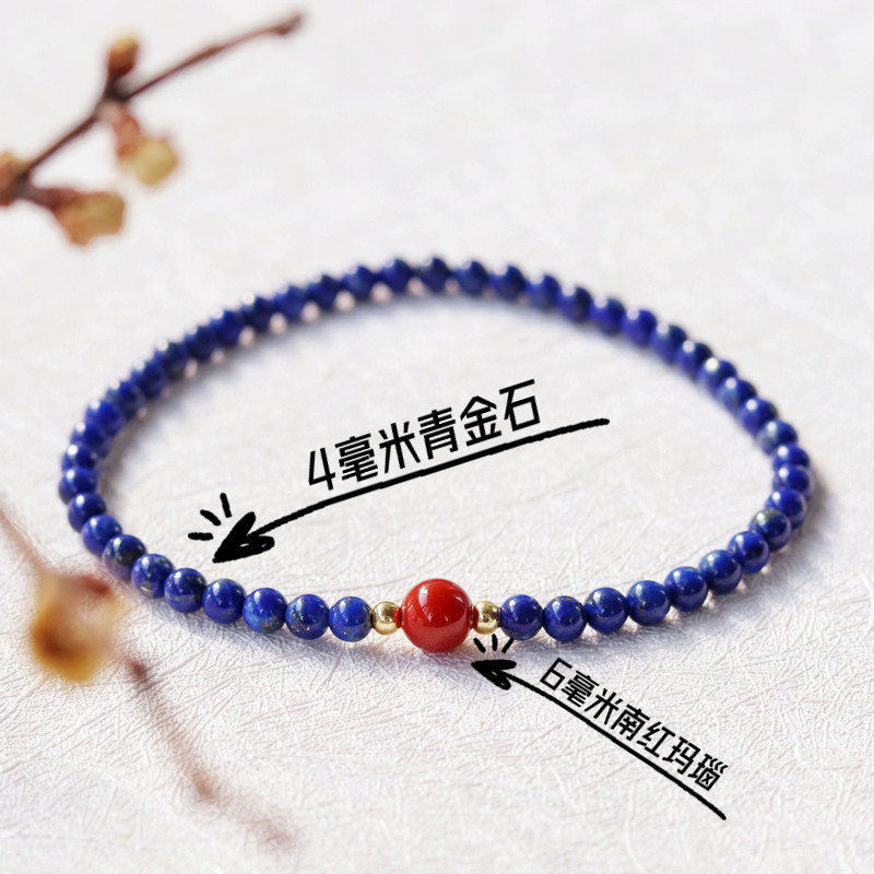 天然青金石手链女细款帝王青招桃花手串单圈转运珠小水晶文艺饰品