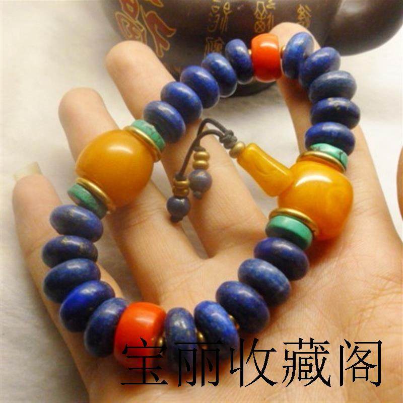 古玩收藏手链天然藏式算盘珠手串七宝珠链青金石蜜蜡佛珠手链配饰