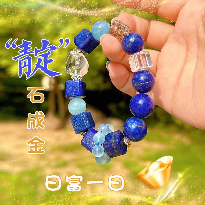 承包你的幸运 | 青金石手链海蓝宝水晶男女铜发晶天然白水晶手串