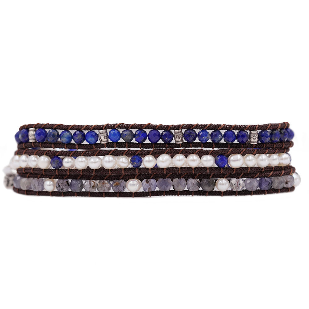 Sea's Love可下水堇青石珍珠青金石情侣款进口编绳三圈手链项链