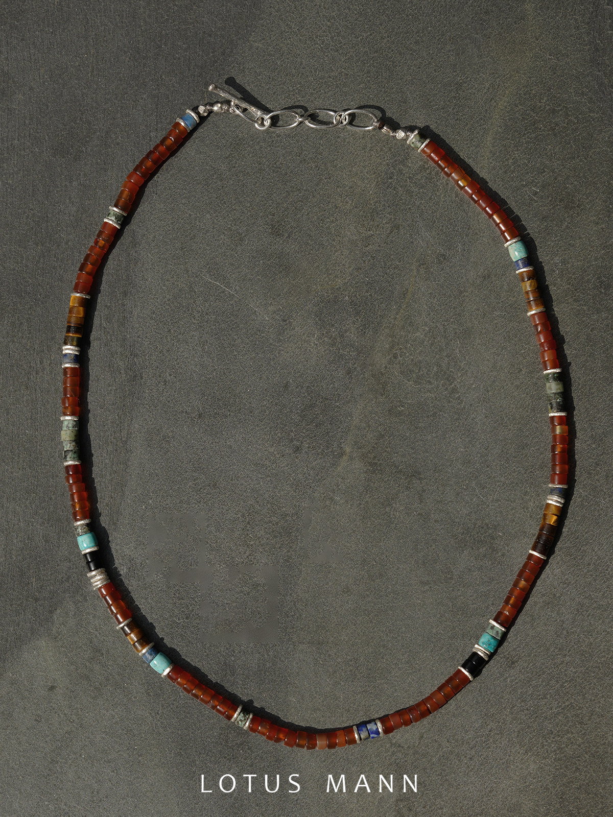 五行.磨砂银4色入.多元素玛瑙绿松石青金石项链Lotus Mann