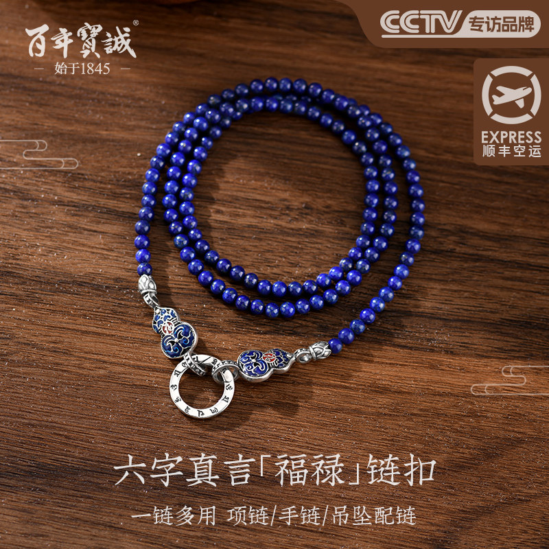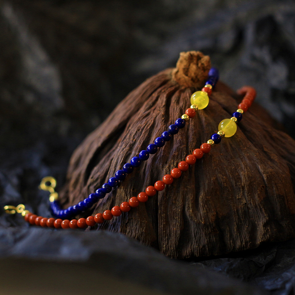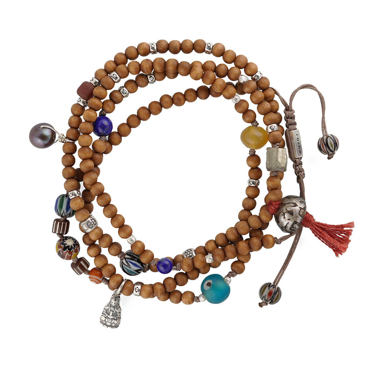 迈索尔老山檀香四圈手链/项链925银.多元素琉璃青金石