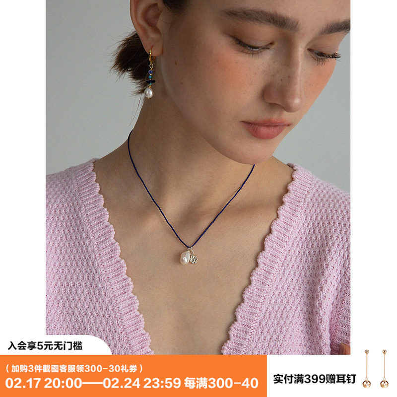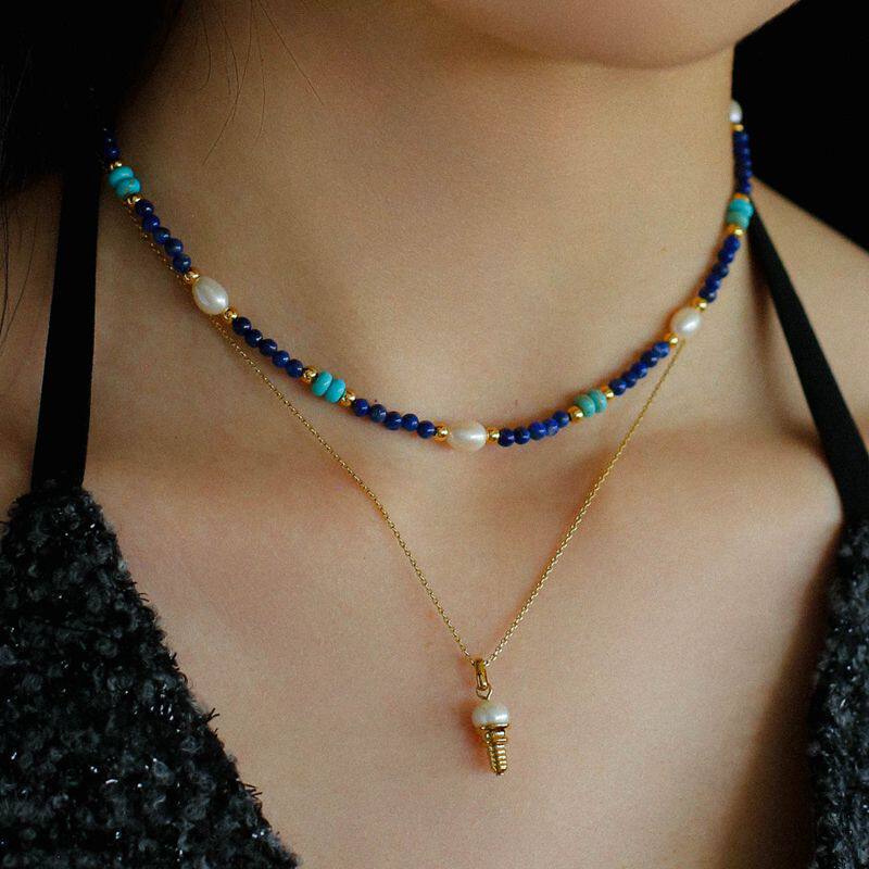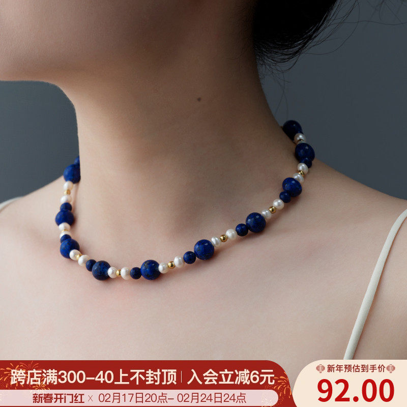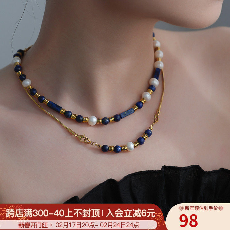 TU JEWELRY 简约青金石天然珍珠手工串珠项链百搭叠戴锁骨链颈链