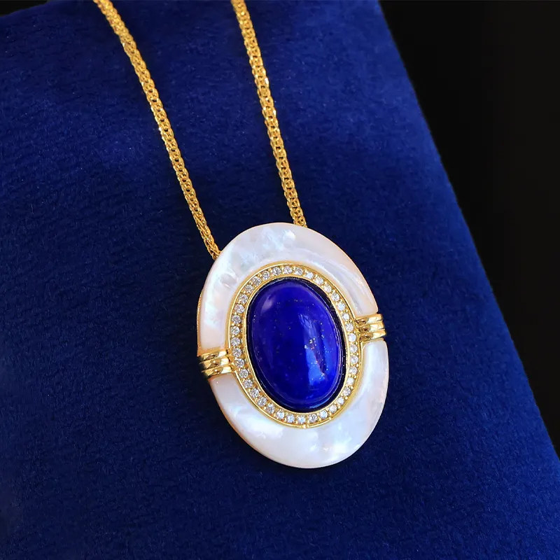 千蕊天然青金石圆牌吊坠 艳蓝原色青金石毛衣链