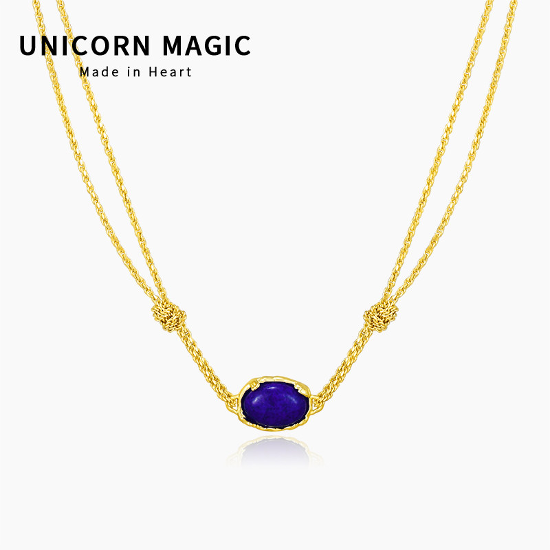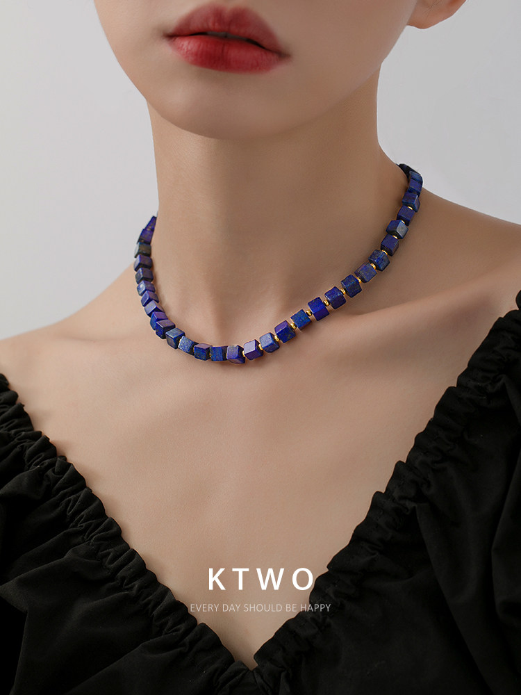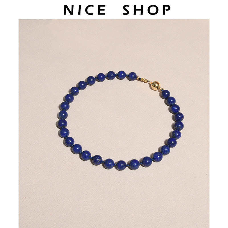 NICE 2023新款镀18K金蓝色青金石串珠项链打结设计百搭显白锁骨链