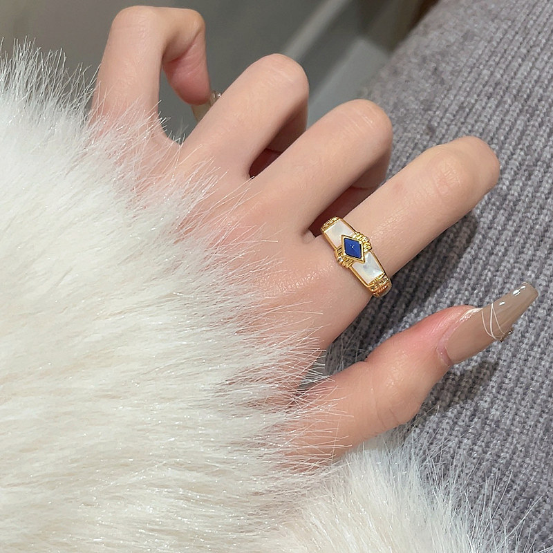 2024年新款设计师款贝母青金石戒指女生复古轻奢时尚高级感食指环