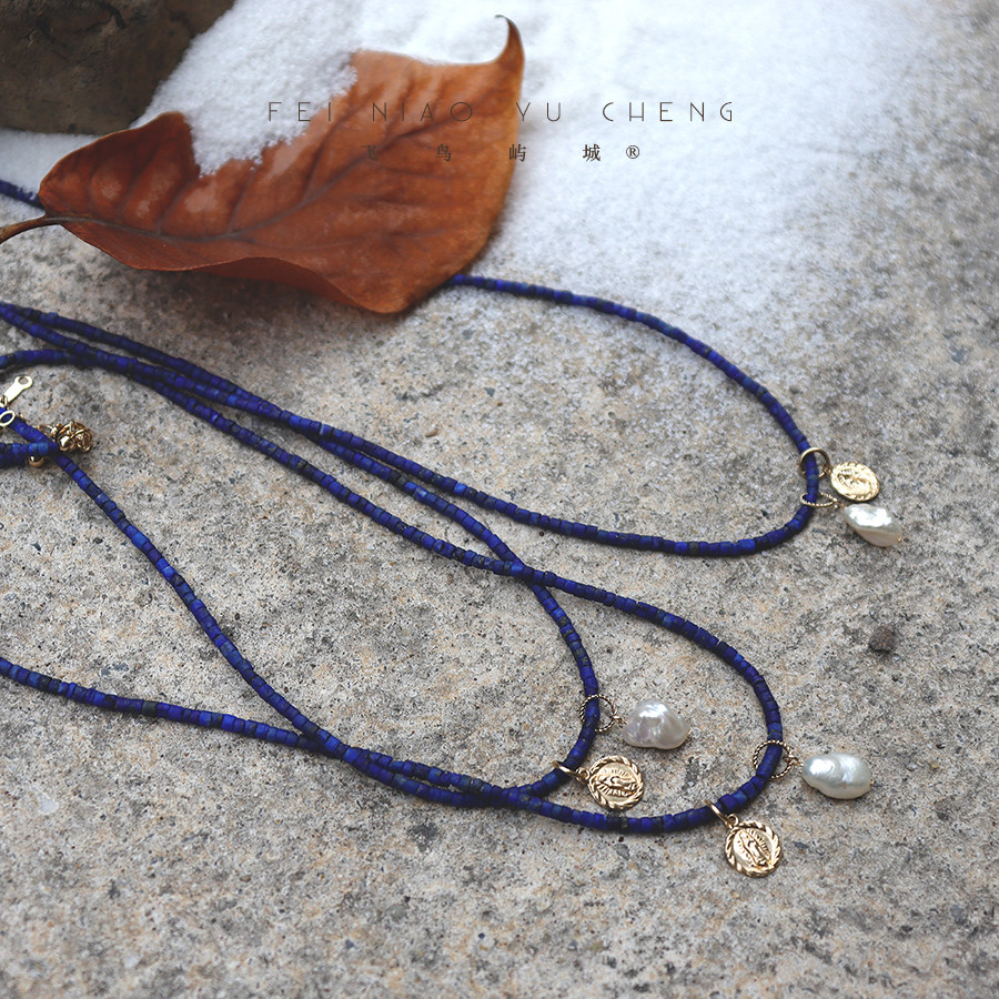 飞鸟屿城/生生不息系列.青金石天然巴洛克珍珠项链串珠锁骨链小众