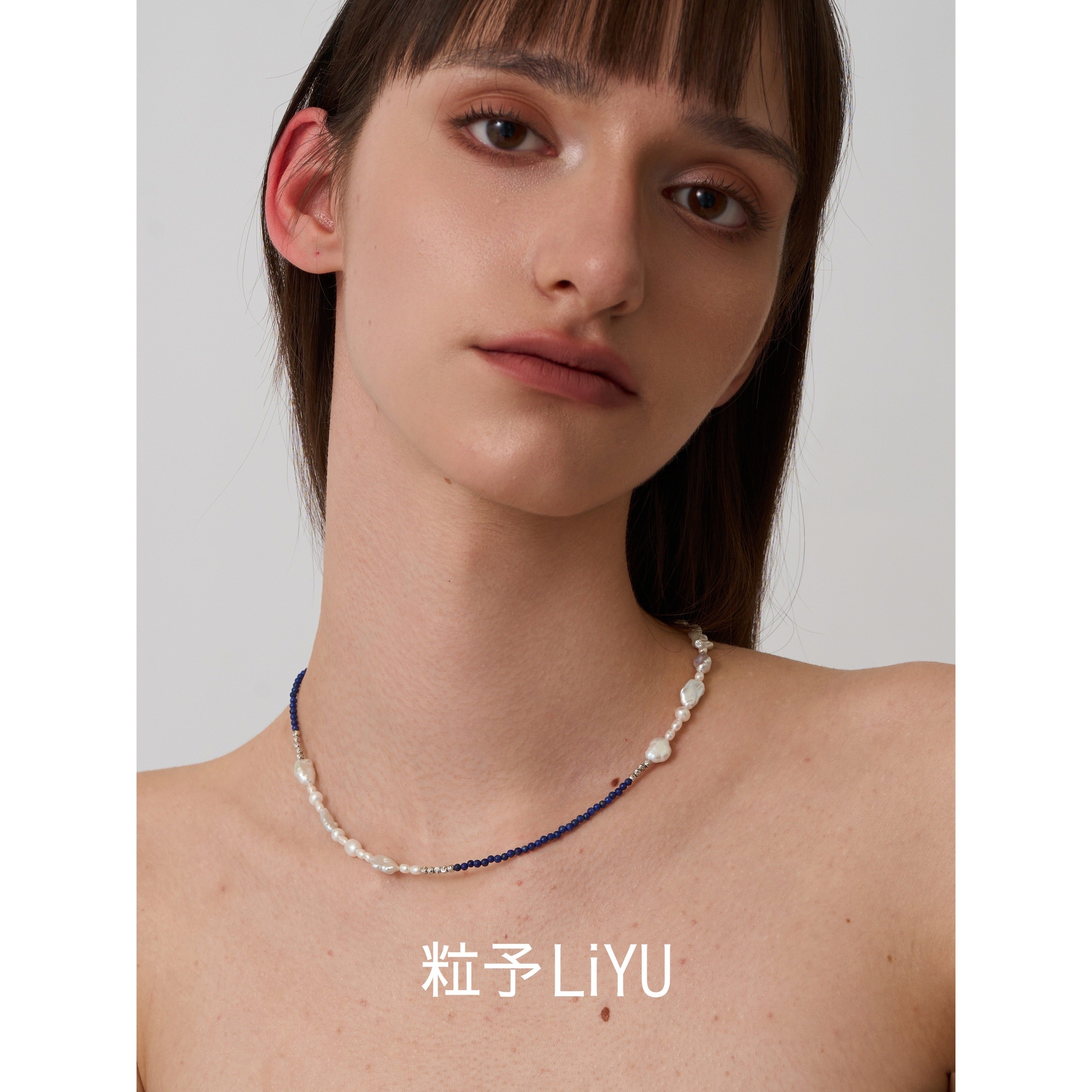粒予原创小众设计蓝色青金石巴洛克碎银设计百搭显白锁骨链