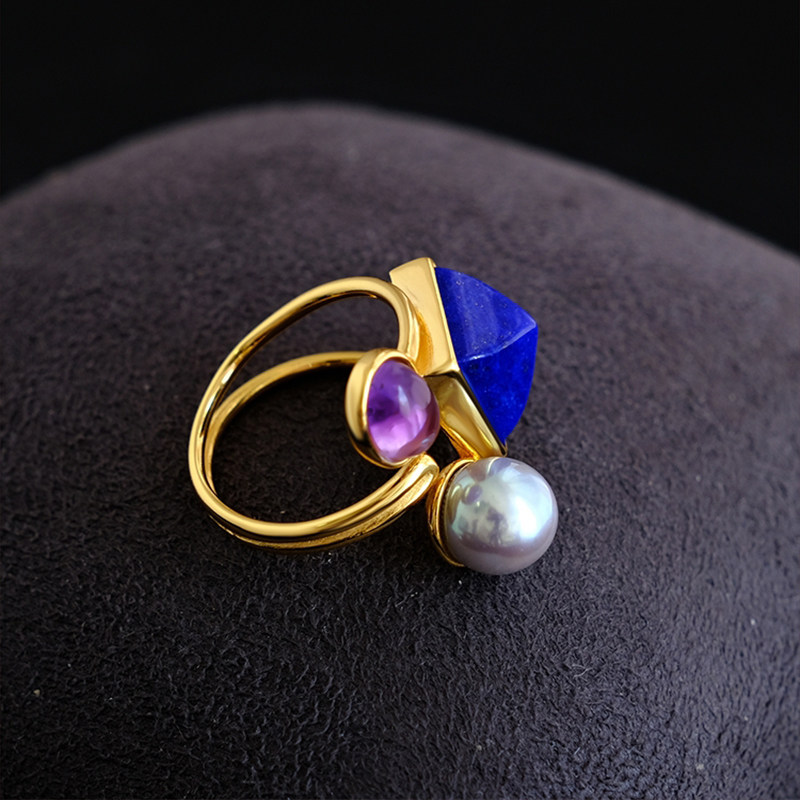 大青坊天然高品质青金石指环吊坠设计师定制款时尚百搭情侣款戒指