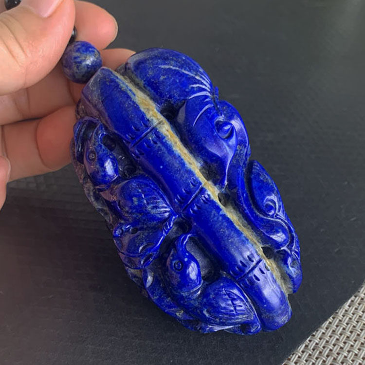 超值特价天然老矿青金石帝王青金石雕刻款吊坠 女款水晶吊坠饰品