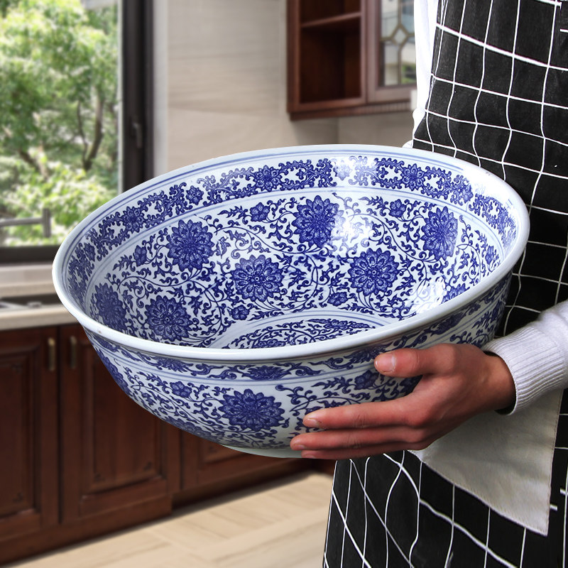 景德镇陶瓷和面盆青花瓷揉面盆发面盆带盖老式加厚瓷盆厨房
