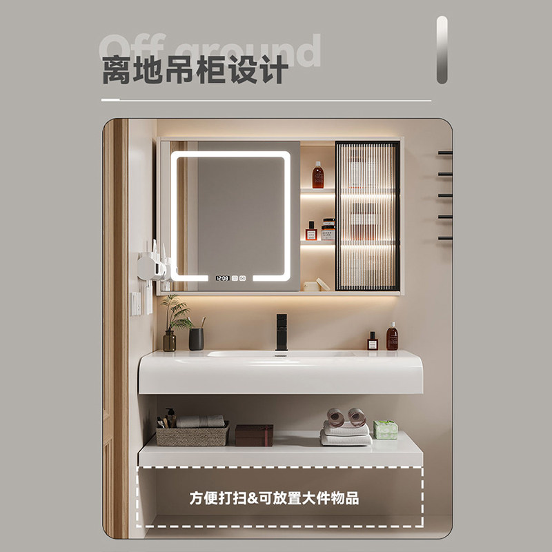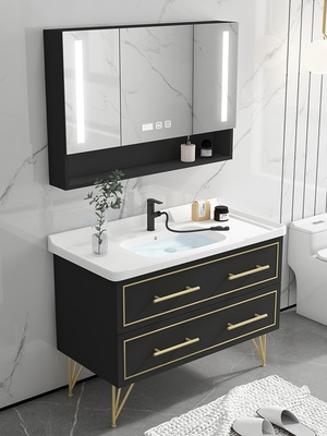 岩板智能浴室柜组合卫生间简约洗脸洗手盆小户型洗漱台一体面盆镜