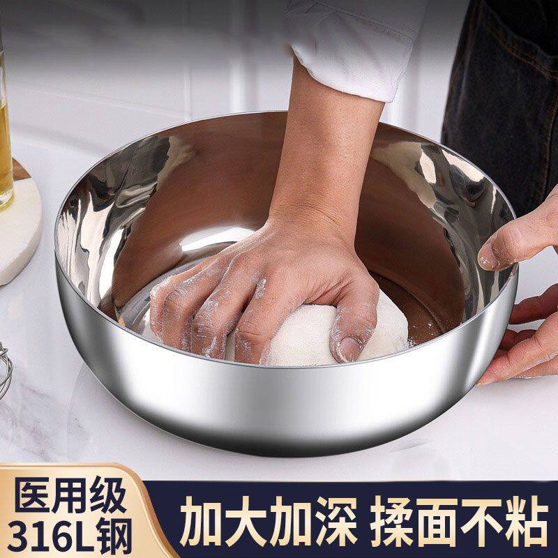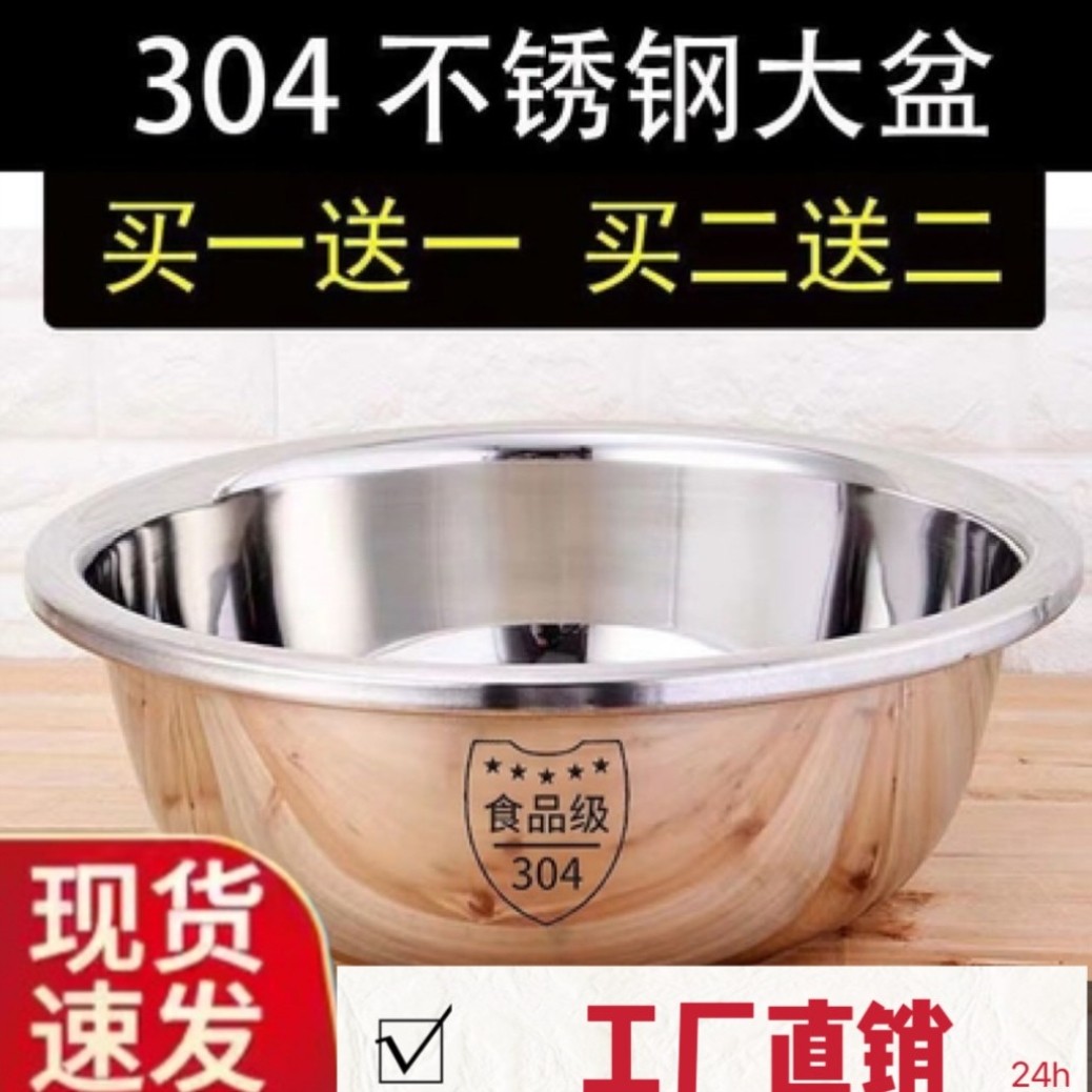【捡漏价】304不锈钢盆子特厚加高新家用洗菜盆和面盆烘焙打蛋盆