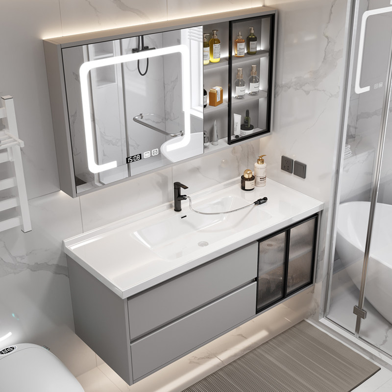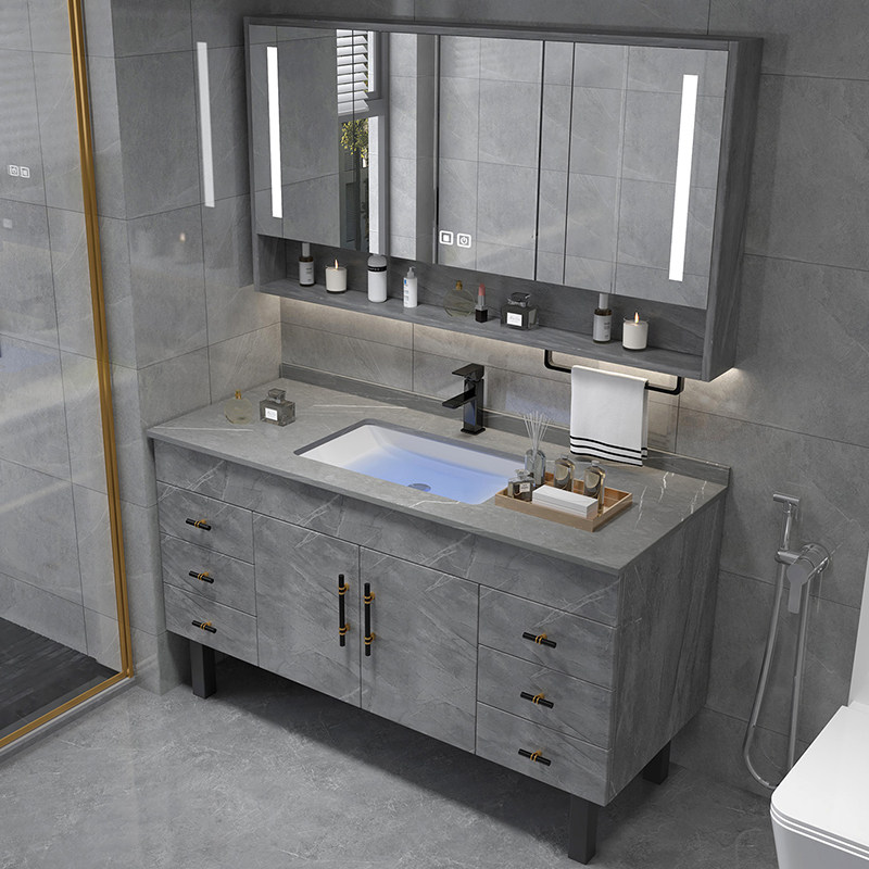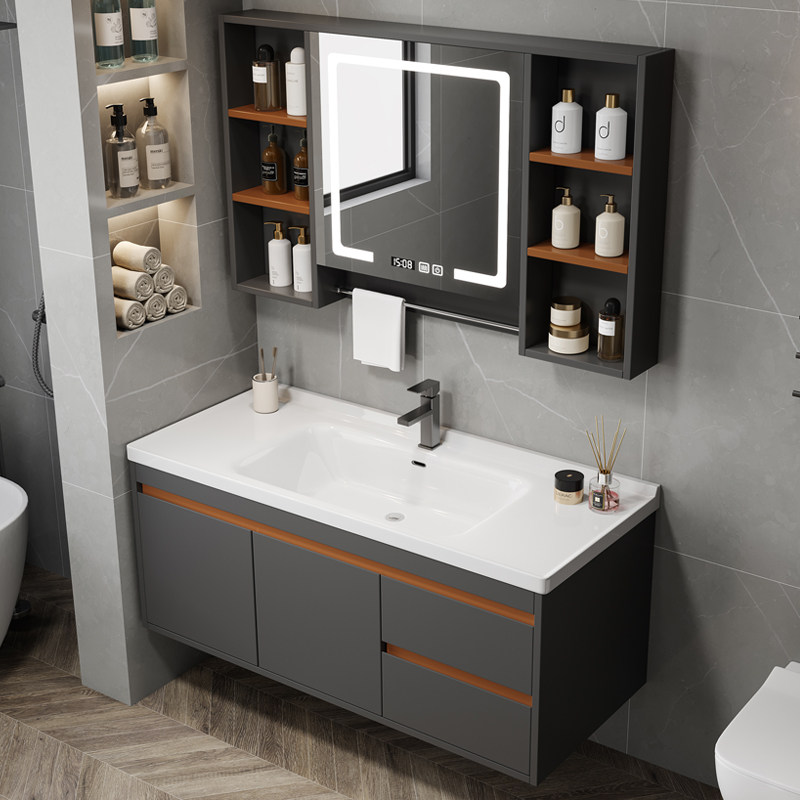 现代太空铝简约浴室柜组合灰岩板一体陶瓷面盆柜洗手池台洗脸盆柜