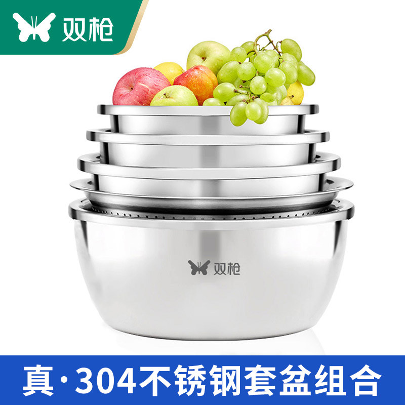 双枪304不锈钢盆食品级家用套装厨房洗菜和面盆漏盆铁盆沥水打蛋