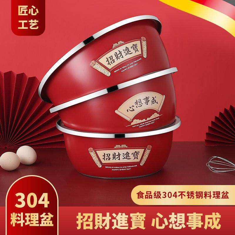 304红色不锈钢盆家用洗脸盆和面盆喜庆用盆进宅结婚喜盆招财进宝