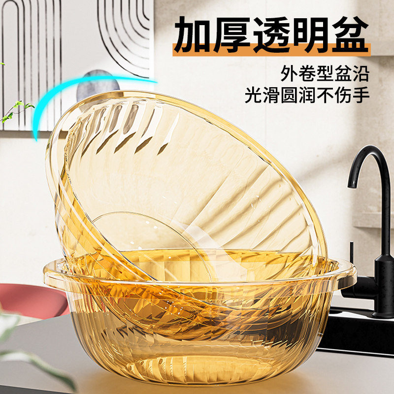 轻奢风透明洗脸盆圆形家用面盆塑料加厚耐用宿舍结实洗菜洗水果盆